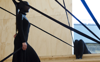 Masked in black tights, faceless bodies move in slow silence to an invisible set of instructions, extending and reflecting relationships between points, lines, curves & each other - merging body, geometrics, architecture, space and meaning.